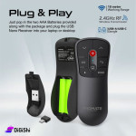 جهاز تحكم لاسلكي للعروض التقديمية، يتيمز بمؤشر ليزر مدمج من الدرجة الثانية، بضوء أحمر ساطع يسهل رؤيته على معظم الخلفيات، ومفاتيح للتحكم بسهولة في عرض السلايدات