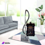 هذه المكنسة مزودة بخرطوم اسطواني طويل لتتمكن من الوصول الى الاماكن البعيدة بسهولة وخزان بسعة 21لتر لجمع الغبار