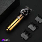 ماكينة حلاقة الشعر الإحترافية للرجال، بمحرك قوي وبطارية ليثيوم 1200 ميللي أمبير، مصنوعة من البلاستيك المتين وشفرات من الفولاذ المقاوم للصدأ، كما أنها تحتوي على مؤشر رقمي لمعرفة كمية الشحن وعدد الدورات في الثانية التي تصل إلى 7000 دورة