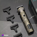 ماكينة حلاقة الشعر الإحترافية للرجال، بمحرك قوي وبطارية ليثيوم 1200 ميللي أمبير، مصنوعة من البلاستيك المتين وشفرات من الفولاذ المقاوم للصدأ، كما أنها تحتوي على مؤشر رقمي لمعرفة كمية الشحن وعدد الدورات في الثانية التي تصل إلى 7000 دورة