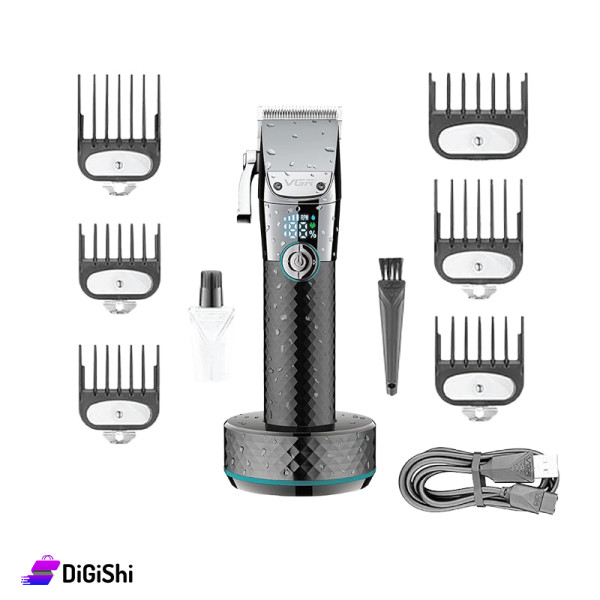 ماكينة حلاقة رجالية شفرة حادة ودقيقة مع 6 رؤوس مختلفة الكثافة 5 سرعات كبل شحن  شاشة LCD