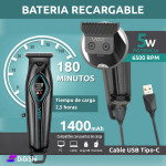 ماكينة حلاقة الشعر الإحترافية للرجال، بتصميم جميل ومميز، بمحرك قوي وبطارية ليثيوم 1400 ميللي أمبير، جسم الماكينة مصنوع من المعدن، والشفرات من الفولاذ المقاوم للصدأ، كما أنها مقاومة للماء