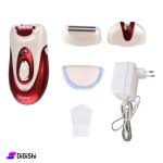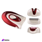 جهاز لإزالة الشعر للنساء، مزود بثلاثة رؤوس كل رأس له استخدام مختلف، رأس لنزع شعر الجسم (ملاقط)، رأس لنزع شعر الوجه (ملاقط)، رأس لتنعيم البشرة(شفرة)