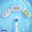شفرة ثلاثية لإزالة شعر بشكل دقيق ونظيف، تحوي على ثلاث شفرات مدمجة بالإضافة إلى وجود مرطب هلامي من الغليسيرين لانزلاق أكثر سلاسة، دون الحاجة إلى صابون أو جل حلاقة منفصل، كما أن الشفرة مدعمة بوسائد حول الشفرات تساعد على حماية البشرة من الجروح للحصول على حلاقة آمنة وبشرة منتعشة وخالية من العيوب