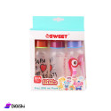 مجموعة مكونة من 3 ببرونات ماركة SWEET سعة 250مل لون شفاف مع أغطية ملونة
