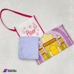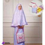 باكج صلاة بناتي، يأتي بحقيبة قماشية بتصمميم مميز، مكون من طقم صلاة بناتي مؤلف من قطعتين حجاب طويل وتنورة طويلة، مصنوع من قماش الكورنيش عالي الجودة