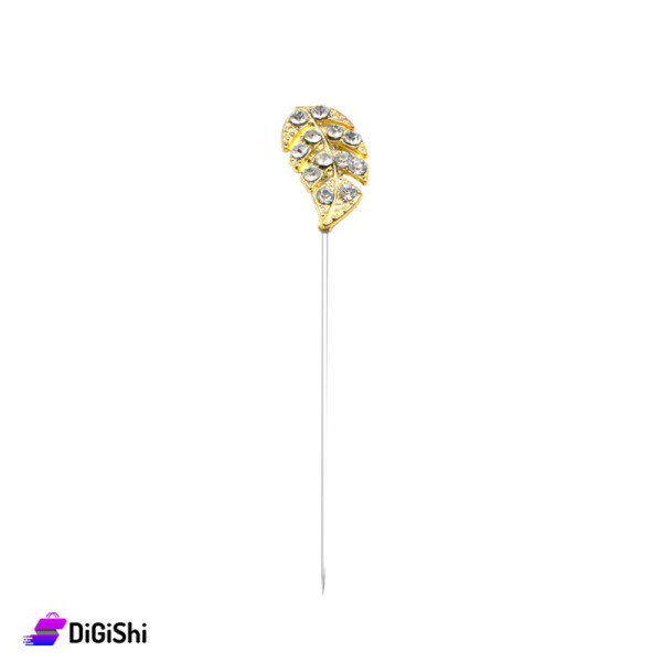 دبوس حجاب شكل ورقة شجر مع ستراس