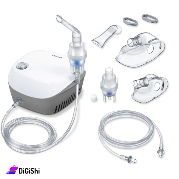 الملحقات: علبة تخزين، البخاخة، قناع الكبار، قناع الأطفال ،قطعة فم، الجهاز