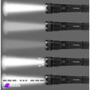 يحتوي المصباح اليدوي على خمسة أوضاع للإضاءة، 100% ، 50% ، 25% ، القوية و SOS من الممكن أيضاً ضبط التركيز