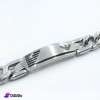 إسوارة على شكل جنزير معدني أنيقة، مطلية بلون فضي بطريقة واقية مقاومة لأي مؤثرات خارجية، يمكنها أن تلائم معصمك بكل سهولة، مصممة بشكل أنيق ومميز على شكل شعار GIORGIO ARMANI، حيث تضفي على معصم يدك نوع من الفخامة والجاذبية