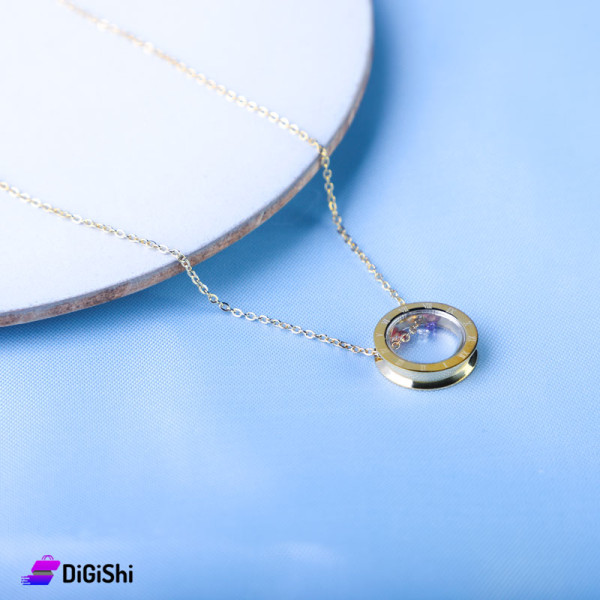 سنسال ذهبي نسائي مع تعليقة حلقة وأحجار ملونة بداخلها