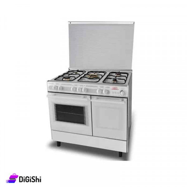 فرن غاز بأربع رؤوس نحاس ورأس تيربو مختلفة القياس وقداحة داخلية، مزود بفرن داخلي يعمل على الغاز من الأسفل ومن الأعلى كهرباء مع مصباح للإضاءة، كما تمتاز حجرته بأنها مطليية بالبورسلان ومصمّم مع غطاء زجاج مقاوم للحرارة