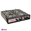 طباخ غاز 4 رؤوس بأحجام مختلفة، يأتي بدون قداحة، مصنوع من الستانلس ستيل المقاوم للصدأ، كما أنه يتمتع بطلاء ثابت لايتغير