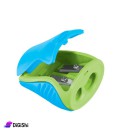 مبراة بلاستيك بثقبين، مصنوعة من مواد عالية الجودة، وتتميز بغطاء علبة مدمج