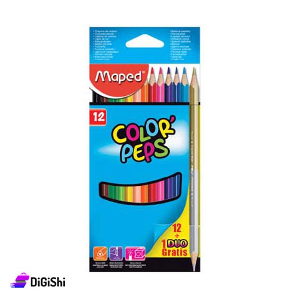 علبة ألوان خشبية بشكل مثلثي سميك لإمساك أسهل واستخدام مريح ، مكونة من 12 لون ساطع مصنوع من خشب عالي الجودة، و قلم رصاص بلونين مختلفين