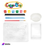 المحتويات: بودرة الجبس، كوب للمزج، عصا للتحريك، 6 ألوان، فرشاة و6 موديلات بالقالب وأخيرا تعليمات تفضيلية