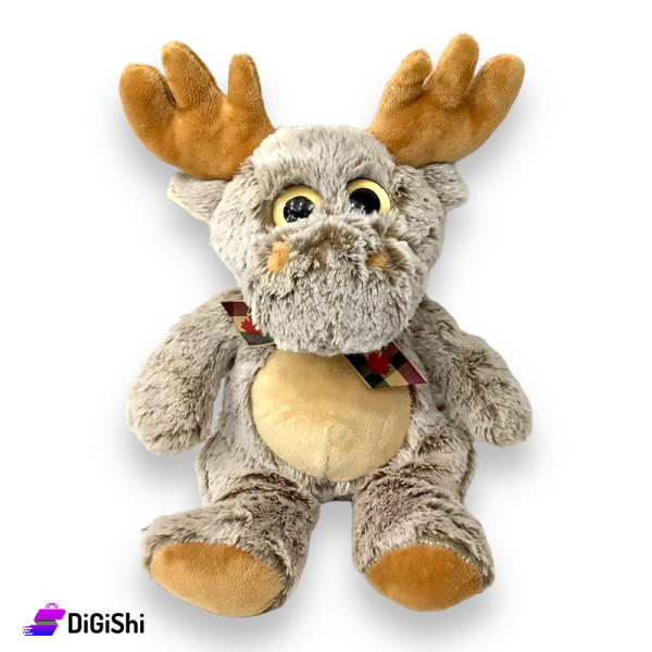 لعبة محشوة شكل غزال بعيون كبيرة لون بني وبيج