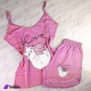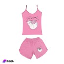 بيجاما نسائية قطنية برسمة قطة - زهر