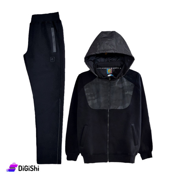 بيجامة رجالي رياضية مصنوعة من القطن المريح للغاية والقليل من البوليستر، ذات تصميم جميل، تتألف من جاكيت مع نقشة مموجة من الأمام، وسحاب على طول الجاكيت، ولها طاقية من القماش المقاوم للماء تحمي من البرد ودخول الهواء، وجيبيين أماميين مع سحاب لحماية يديك من برد الشتاء أو وضع أغراضك الشخصية بها