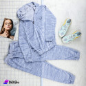 بيجامة نسائية شتوية مصنوعة من مخمل عالي الجودة، ذات تصميم جميل وأنيق، مكونة من جاكيت طويل مزود بقبعة وجيبين أماميين مع رسمة فراشة صغيرة، بالإضافة إلى بنطال مخمل مع جيوب وزمة عند الكاحل