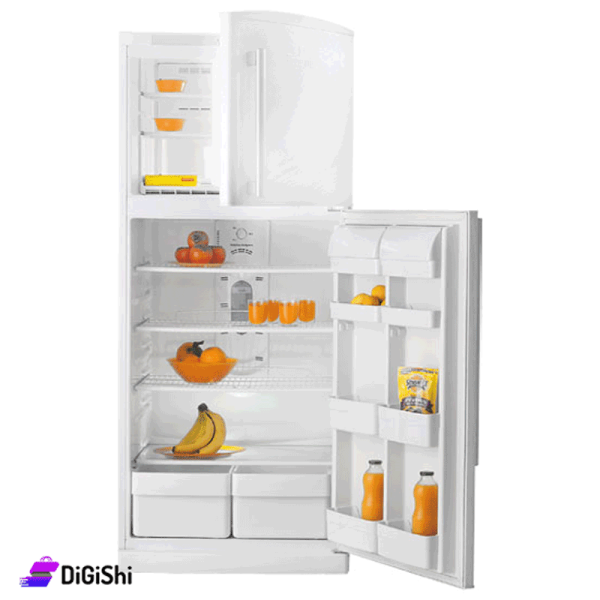تتكون الثلاجة من 3 أرفف شبكية ورف واحد زجاج مع 3 ثلاث حجرات للباب وحجرة واحدة للألبان، أما الفريزر تتكون من رفين شبكيين وحجرة واحدة للباب