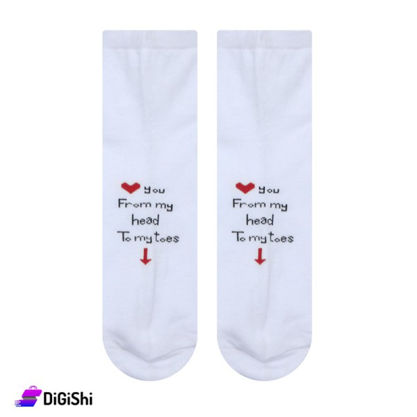 جوارب رجالية قطنية عالية الجودة بطول يصل إلى الكاحل تقريباً وبألوان أنيقة، وعبارة Love you from my head to m toe، ومناسبة جداً لتكون هدية بمناسبة عيد الحب