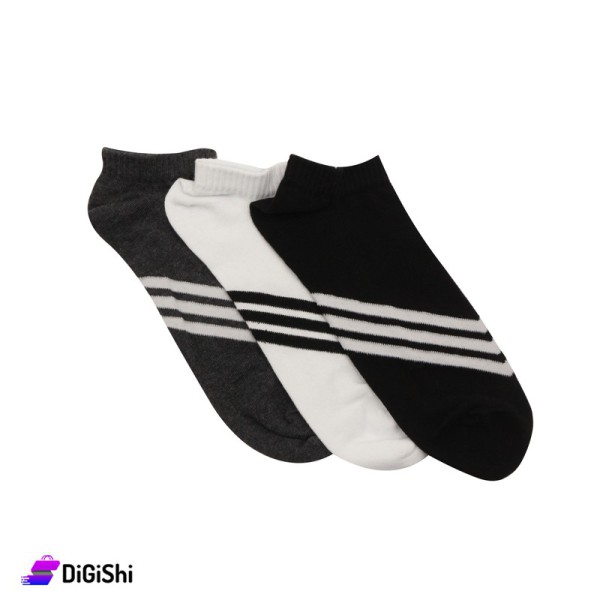 مجموعة جوارب ألشين قطنية شبابية السماح مخططة - 3 أزواج مجموعة 1