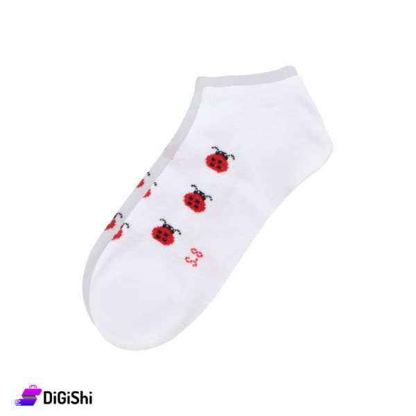 جوارب قطن ولادي قصيرة رسمة دعسوقة ZOX - أبيض