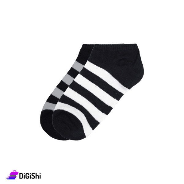 جوارب قطنية رجالية قصيرة مخططة ZOX Plus - أسود