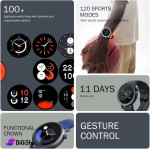 10 ATM مقاومة للماء مكالمات بلوتوث على المعصم شاشة عالية الدقة 1.32 بوصة 150 وضعًا رياضيًا كما أنها تدعم تطبيقات الهاتف المحمول الأساسية مثل المنبه والطقس والساعة يمكنك إرسال رسالة أو رفض مكالمة بنقرة واحدة تحتوي على آلة حاسبة وتحكم في الموسيقى والعديد من الميزات...