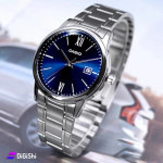 ساعة يد رجالية، بتصميم أنيق كلاسيكي وفاخر، مصنوعة من سوار ستانلس ستيل مقاوم للصدأ، كما تتميز بشاشة عرض تناظرية لون أزرق مصنوعة من الزجاج المعدني، كما إنها مقاومة للماء حتى عمق 50متر