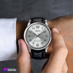 ساعة يد رجالية، بتصميم أنيق كلاسيكي وفاخر، تأتي بكستك مصنوع من الجلد الطبيعي الفاخر، كما تتميز بشاشة عرض تناظرية مصنوعة من الزجاج المعدني، كما إنها مقاومة للماء حتى عمق 50متر