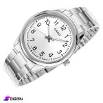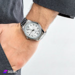 ساعة يد رجالية، بتصميم أنيق كلاسيكي وفاخر، مصنوعة من سوار ستانلس ستيل مقاوم للصدأ، ومشبك ثلاثي الطيات، كما تتميز بشاشة عرض تناظرية مصنوعة من الزجاج المعدني