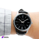 ساعة يد رجالية، بتصميم أنيق كلاسيكي وفاخر، تأتي بكستك مصنوع من الجلد الطبيعي الفاخر، كما تتميز بشاشة عرض تناظرية مصنوعة من الزجاج المعدني، كما إنها مقاومة للماء حتى عمق 50متر