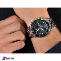 ساعة يد رجالية، بتصميم أنيق كلاسيكي ورياضي في الوقت نفسه، مصنوعة من سوار ستانلس ستيل مقاوم للصدأ، ومشبك ثلاثي الطيات، تتميز بشاشة عرض تناظرية مصنوعة من الزجاج المعدني، مزودة بمؤشر لعرض التاريج