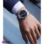 ساعة يد رجالية، بتصميم أنيق كلاسيكي وفخم، مصنوعة من سوار مصنوع ستانلس ستيل، تتميز بشاشة عرض تناظرية مصنوعة من الزجاج المعدني