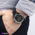 ساعة يد رجالية، بتصميم أنيق كلاسيكي ورياضي في الوقت نفسه، مصنوعة من سوار مصنوع من الجلد الأصلي، تتميز بشاشة عرض تناظرية مصنوعة من الزجاج المعدني