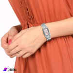 ساعة يد نسائية، بتصميم أنيق كلاسيكي وفاخر، مصنوعة من سوار ستانلس ستيل مقاوم للصدأ، ومشبك ثلاثي الطيات، تتميز بشاشة عرض تناظرية مصنوعة من الزجاج المعدني