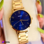 ساعة يد نسائية، بتصميم أنيق كلاسيكي وفاخر، مصنوعة من سوار ستانلس ستيل مقاوم للصدأ، ومشبك ثلاثي الطيات، تتميز بشاشة لون كحلي، وعرض تناظري مصنوعة من الزجاج المعدني