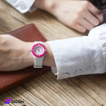 ساعة يد نسائية، بتصميم أنيق كلاسيكي وفاخر، مصنوعة من مادة السيليكون المتين، تتميز بشاشة عرض تناظرية مصنوعة من الزجاج المعدني، مزودة بمؤشر لعرض التاريخ