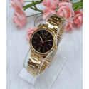 ساعة يد نسائية، بتصميم أنيق كلاسيكي وفاخر، مصنوعة من سوار ستانلس ستيل مقاوم للصدأ، ومشبك ثلاثي الطيات، تتميز بشاشة عرض تناظرية مصنوعة من الزجاج المعدني