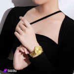 ساعة يد نسائية، بتصميم أنيق كلاسيكي وفاخر، مصنوعة من سوار ستانلس ستيل مقاوم للصدأ، ومشبك ثلاثي الطيات، تتميز بمكنة يابانية وكفالة 3أشهر