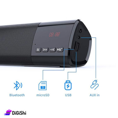 مزود بمنفذ بطاقة TF ,ومنفذ للسماعات AUX, , ومنفذ USB