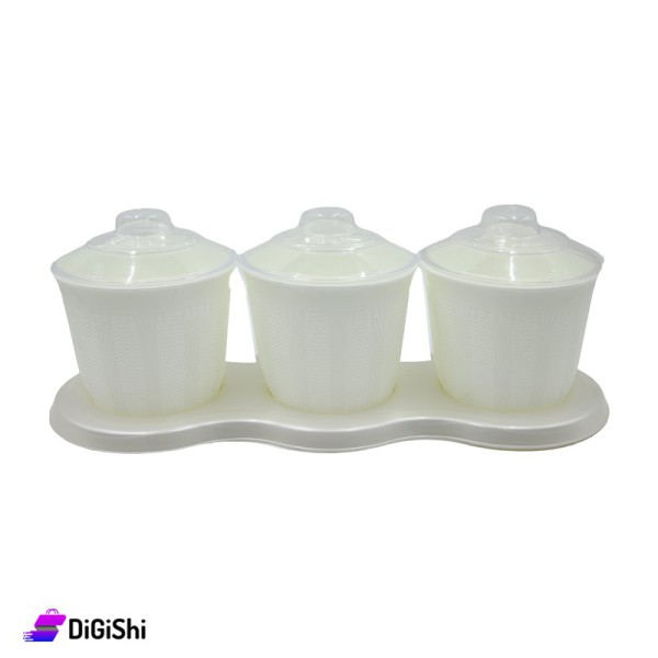مجموعة علب بلاستيك للمطبخ، مصنوعة من مادة ذات جودة عالية، ولكل علبة غطاء بلاستيكي لحفظ محتوى العلبة من الرطوبة والروائح، كما أن القاعدة المرفقة بالمجموعة ستسهل تنسيقها في أحد أركان المطبخ