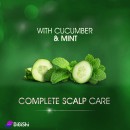 تعمل تركيبته المليئة بالخيار والنعناع على تنعيم الشعر وتخفيف جفاف الشعر، ويقوم بيريثيون الزنك الموجود في تركيبته بالمساعدة في القضاء على القشرة بشكل نهائي