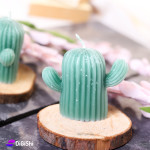 Hand Made شمعة شكل صبارة - زيتي وأخضر فاتح