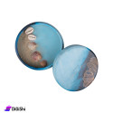 علبة معدنية زرقاء بداخلها شمعة بشكل شط البحر مع صدف