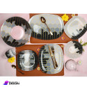 كما أنه يحتوي من بين القطع على أكواب وفناجين وزبادي وأطباق زجاجية بلون أنيق لتضفي على المائدة مظهر من الرقي، يمكن إستخدام والأكواب لتقديم الماء أو العصائر