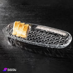 صحن بتصميم مميز يأتي بشكل مستطيل طويل، مصنوع من زجاج عالي الجودة، مثالي للاستخدام اليومي