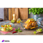 جاط مع غطاء مصنوع من زجاج حراري عالي الجودة متعدد الاستخدامات، متين وشديد التحمل مناسب للاستخدام طويل الأمد، غير لاصق ومقاوم للخدوش، بالإضافة إلى أن الأعماق مناسبة للعديد من أنواع الأطعمة حيث تمنع الانسكاب، كما يتميز بتصميم عملي ومناسب، ومقابض مريحة لإخراجه من الفرن، مناسب لوجبه عائلية